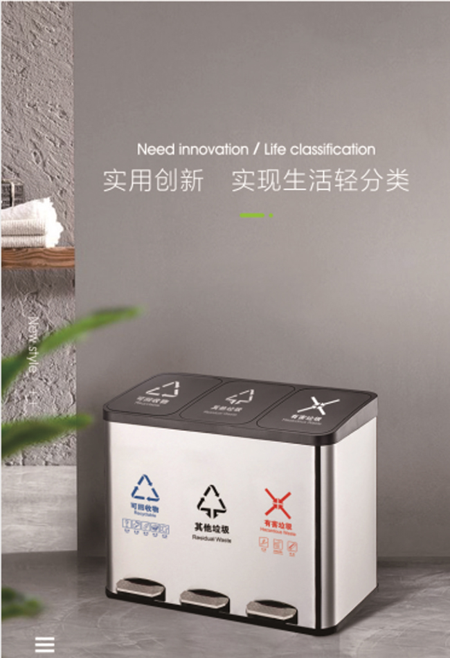 Product Name | Stainless steel pedal garbage can | 600*400*410 mm 600*400*480 mm 600*400*610 mm | 27L(9L*3) 45L(15L*3) 60L(20L*3) |